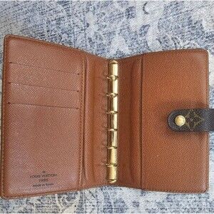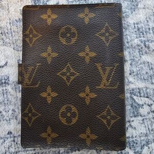 ⭐This compact agenda cover in Monogram canvas can hold three credit cards. It can be used as 6 holders, address notepad, or calendars. Fits passport. This is pre-owned and shows a slight rubbing on the interior and corners. I do not have the current agenda paper fill, but this can be ordered from LV online. No box or dustbag is included.