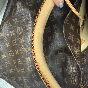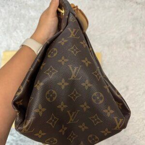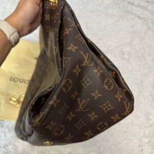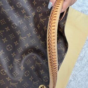 100% authentic LOUIS VUITTON Monogram Artsy MM. This large tote is crafted of durable Louis Vuitton monogram coated toile canvas. This shoulder bag features a natural vachetta cowhide rolled leather shoulder strap with a sleek braided accent. The top opens to an ivory microfiber interior with zipper and patch pockets.
