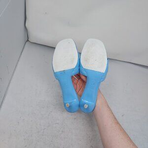 LOUIS VUITTON Monogram Blue Embossed Logo Revival Heel Sandal