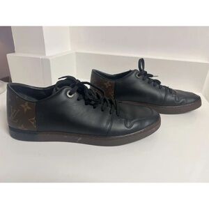 Men Authentic Louis Vuitton black leather sneakers with Monogram details