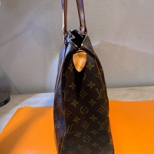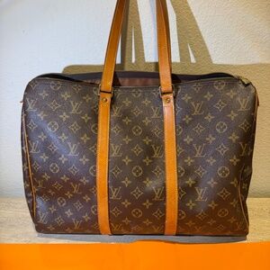 The Louis Vuitton Monogram Flanerie Travel Bag is a large versatile tote featuring the Classic Brown LV Monogram Coated Canvas with Vachetta Leather Trim and Dual Leather Strap Handles. It has Rich Brass Hardware Accents,, Monogrammed Zipper Closure at Top and an Interior Brown Canvas Lining with a Single Slip Pocket. The dimensions of the bag are approximately 19”x13”x6” making it a great choice for daily use. Very Good Pre-Loved condition.