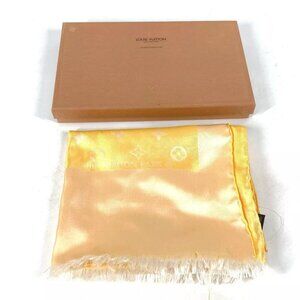 LOUIS VUITTON Monogram Fringe Scarf Stole/Shawl shawl silk yellow
