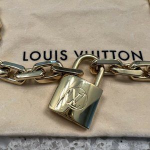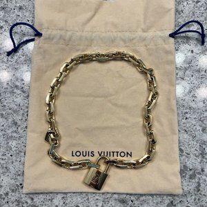 LOUIS VUITTON Monogram Gold Chain Padlock KeyNecklace - LV EDGE NECKLACE CADENAS