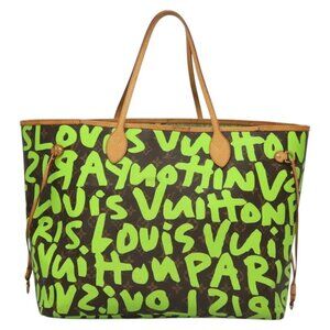 LOUIS VUITTON Monogram Graffiti Neverfull GM Tote Bag Green M93703 Auth 116016A