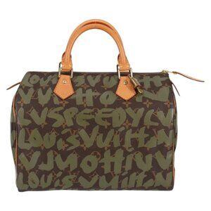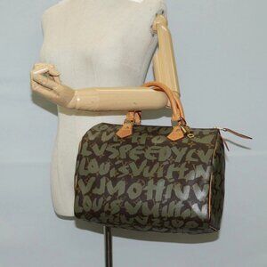LOUIS VUITTON Monogram Graffiti Speedy 30 Bag Green Khaki