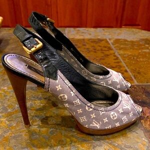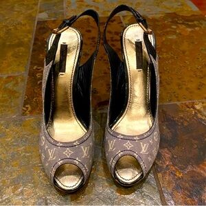 LOUIS VUITTON Monogram Idylle Slingback Open Toe Pumps, w/COA. EUC