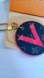This is the authentic LOUIS VUITTON Monogram Illustre V Bag Charm Key Ring Grenade. This key holder is a disk of Louis Vuitton monogram on toile canvas while the reverse side is a bright pink color. The key ring has a bold pink V with the Louis Vuitton "Articles de Voyage" logo print and a brass D-Ring clasp and key ring.
