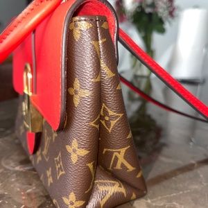 This LV crossbody purse is versatile and can be also handheld with the removable shoulder strap that is also LV marked. It has been worn 3-4 times . Is still in very new condition! You can’t even tell that is has been used in person. No wear or tear, no damages to outside . The inside of the purse of minimal color change from use but again it is still bright red as in the pictures . Purse does not include tags/dust bag or box . Product will be sent to poshmark headquarters before you receive it to authenticate it free of charge.