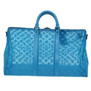 LOUIS VUITTON Monogram Mesh Keepall Triangle 50 Bag Blue M45048