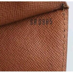 Louis Vuitton Monceau 28 authentic hand bag . Made in France with monogram canvas material. The bag has a height of 8.7 inches and a length of 11.0 inches. The bag has a depth of 3.1 inches and is equipped with a top handle. Its exterior color is brown monogram with gold accents on the hardware. The hardware does show some signs of wear, but it still in very good shape. The bag's serial number is SR0985. The bag does not come with the strap or keys, but still secures firmly.