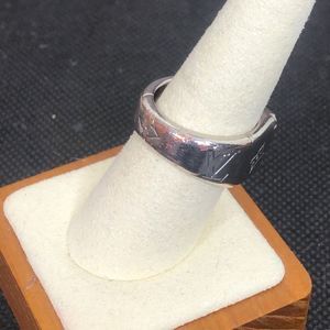 LOUIS VUITTON Monogram Silver Plated Signet Unisex Ring Sz 9 (US SIZE)