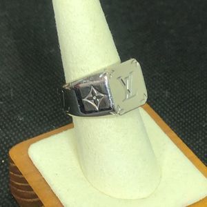 LOUIS VUITTON Monogram Silver Plated Signet Ring Unisex