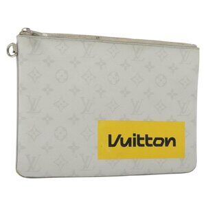 LOUIS VUITTON Monogram White Zipped Pouch GM Clutch Bag