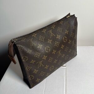 LOUIS VUITTON Monogram Zippered Clutch Pouch Toiletry Case Bag Brown Paris 1970
