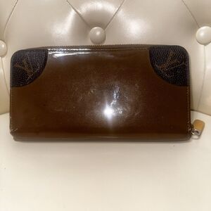 LOUIS VUITTON Monogram Zippy Venice Long Wallet Khaki Vernis Authentic