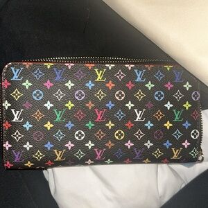 LOUIS VUITTON Monogram black Multicolor Zippy wallet (M60050) with gold hardware
