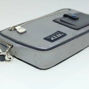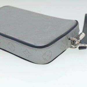 LOUIS VUITTON Monogram satellite Clutch Bag Silver M44171 LV Auth 32349A
