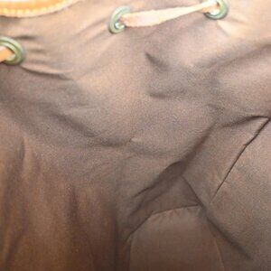 ( Drawstring, strap base leather, top leather and flap belt have cracks. Please check a photograph and the text carefully. )