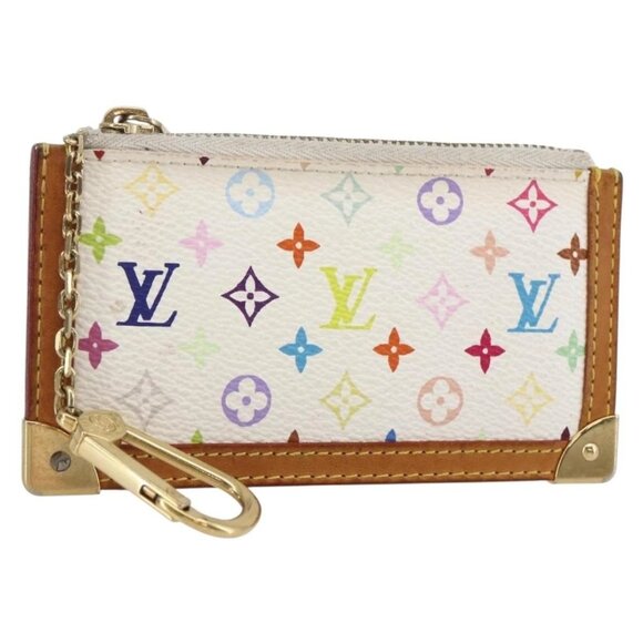 LOUIS VUITTON Multicolor Pochette Cles Coin Purse White M92655 LV Auth 145789