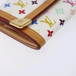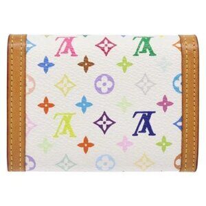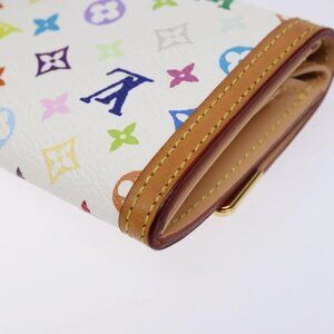 LOUIS VUITTON Multicolor Porte Monnaie Pla Coin Purse White M92657 Auth 137227