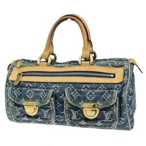 LOUIS VUITTON Neo Speedy Hand Bag Monogram Denim Leather Blue