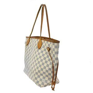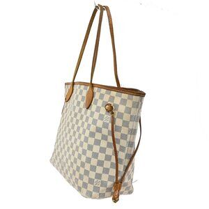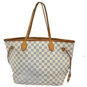 LOUIS VUITTON Neverfull MM Shoulder Tote Bag Damier Azur Leather