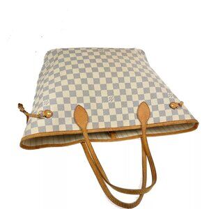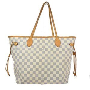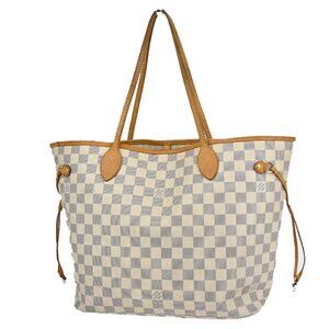 LOUIS VUITTON Neverfull MM Shoulder Tote Bag Damier Azur Leather N51107 16HB905