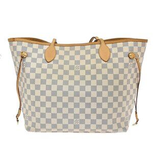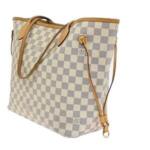 LOUIS VUITTON Neverfull MM Shoulder Tote Bag Damier Azur White N51107 14EF687