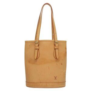 LOUIS VUITTON Nomad leather Bucket PM Shoulder Bag Beige M85001 LV Auth 132875