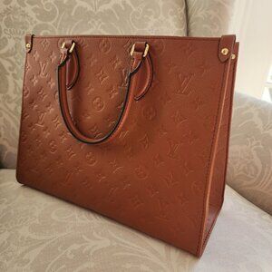 LOUIS VUITTON OnTheGo MM Monogram Empreinte Tote - Cognac Brown - New!