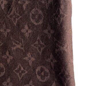 LOUIS VUITTON Oversized Monogram Blanket Shawl Brown Silk Wool Timeless Chic