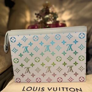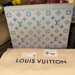 LOUIS VUITTON POCHETTE VOYAGE MM IRIDESCENT GRADIENT MONO GRAY NEVER WORN!
