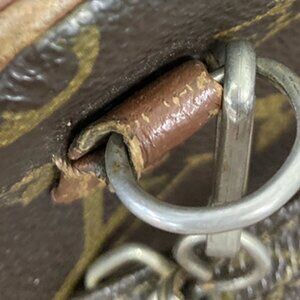 ( Zipper has been repaired. Corner and edge leather have scuff. Strap base leather has been ripped. Inside has been dirty. Please check a photograph and the text carefully. )