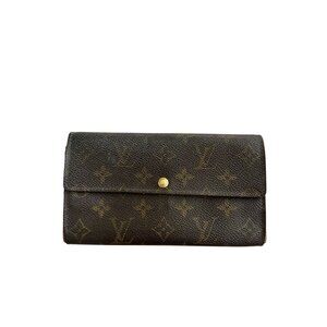Elegant LOUIS VUITTON Porte Monnaie wallet with iconic monogram design. The long snap style offers practical storage for essentials, perfect for everyday luxury. Good condition with wear from use as shown