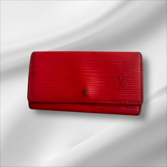 The LOUIS VUITTON Red Epi Leather Keyholder Case is a chic, compact accessory. Crafted from signature Epi leather, it's perfect for keeping keys organized and protected.