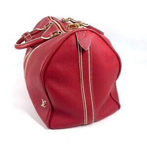 LOUIS VUITTON Red Leather Keepall 50 Boston Bag