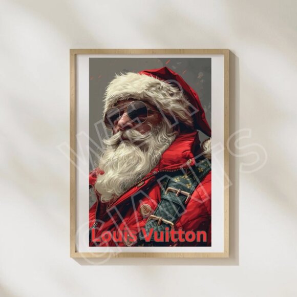 This Louis Vuitton Santa 11"x17" art print is a hand-made holiday-themed artwork made of paper. Featuring a festive Santa Claus design, this print is perfect for adding a touch of Christmas spirit to any room. With its unique combination of luxury brand collaboration and holiday theme, this print is sure to be a standout piece in any art collection. Perfect for collectors or those looking to add a special touch to their holiday decor, this art print is a one-of-a-kind piece that will surely bring joy and charm during the festive season.