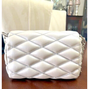 LOUIS VUITTON Silver/White Pearl Malletage Leather GO-14 PM Bag Purse