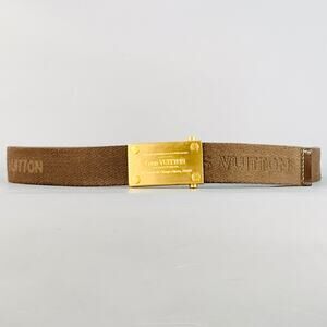 LOUIS VUITTON Size 40 Inventeur Brown Gold Logo Canvas Box Buckle Belt