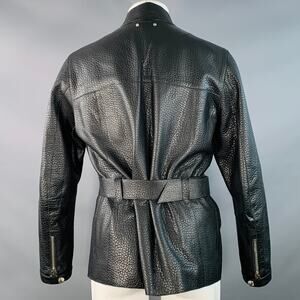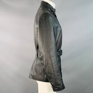 LOUIS VUITTON Size S Black Pebble Grain Bullhide Leather Zip Snaps Belted Jacket