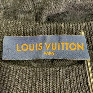 LOUIS VUITTON "Damier Signature Crew Neck" sweater in a navy wool knit featuring signature LV Damier checkered pattern, long sleeves, and crew neck. Made in Italy.