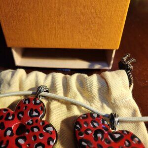 Hi, I am selling a, Guaranteed as Described, Rare Authentic LOUIS VUITTON Stephen Sprouse Red/Back Spotted Stone Enamel Heart Flower Hair Tie, In Excellent Condition.