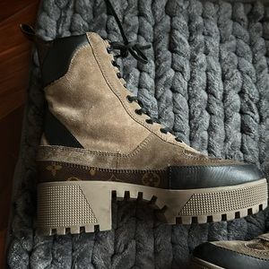 LOUIS VUITTON Suede Calfskin Monogram Laureate Platform Desert Boots size 37
