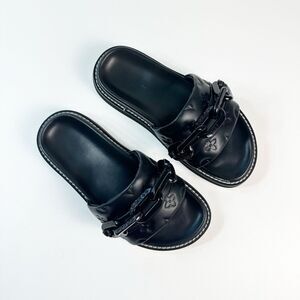LOUIS VUITTON Sunset Flat Comfort Mule Slide Sandal Size 39 US 8-8.5 Black Monogram Monogram Leather Canvas