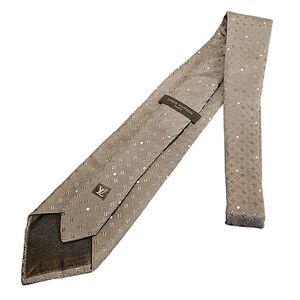This is a 100% silk tie made by Louis Vuitton. It is in beautiful condition. It is made in a heavy woven silk in light brown. The LV box is included for storage (box does have some damage, see photo). Offers are encouraged. Thank you for looking.