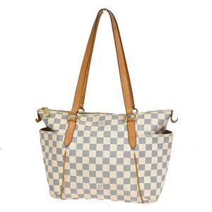 LOUIS VUITTON Totally PM Shoulder Bag Damier Azur Leather White