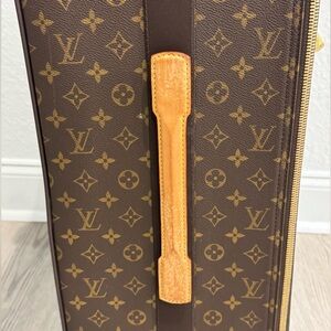 This vintage Louis Vuitton suitcase is in preowned condition with several photos of all angles of the suitcase. The date code illustrates this bag was handcrafted in France in March of 2004. On the base of the suitcase, the protective feet were damaged by the airline and removed. I had planned to have this suitcase, completely restored however I do not travel as much and this suitcase is on the heavy side. The weight of the suitcase is indicative of the higher quality materials and the vintage age. Please note there are signs of use throughout the suitcase. Nothing that is overly noticeable when it is being used. The main reason I am parting with this suitcase is due to not traveling as much and the weight. It includes the garment bag, the luggage tag (this is a replacement of the original one which was heavily damaged by the airline), 2 locks with keys (the photo only shows one but two are included).