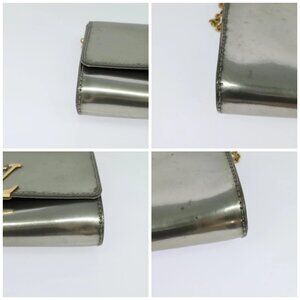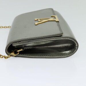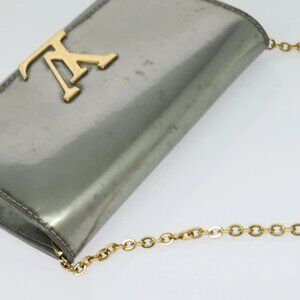 LOUIS VUITTON Vernis Pochette Louise PM Clutch Bag Silver LV Auth