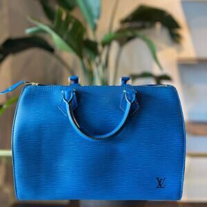 LOUIS VUITTON Vintage Blue Epi Speedy 35 Handbag