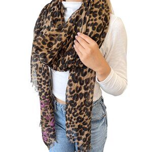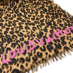 LOUIS VUITTON Vintage Leopard Animal Graffiti Scarf Wrap Brown Cashmere [105649]